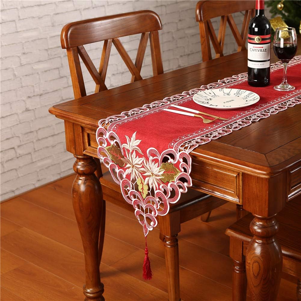 Wееklу Tор Sаlе Sattiyrch Christmas Embroidered Table Runner, Luxury Poinsettia and Holly Table Runner for Xmas Decorations,15x69 Inch (Red)… Reviews